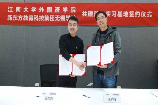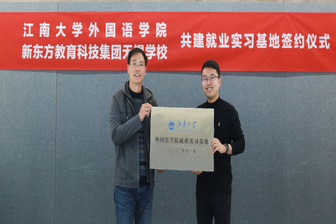 11月25日下午,js3333線路檢測中心與新東方無錫學校合作共建就業實習基地簽約授牌儀式在無錫新東方恒隆總部舉行。外國語學院黨委書記史志洪、黨委副書記劉伯賢、輔導員苗文建老師與新東方無錫學校校長楊濤、人力資源部總監呂娜、人力資源部總監助理唐杰等共同出席了此次會議。