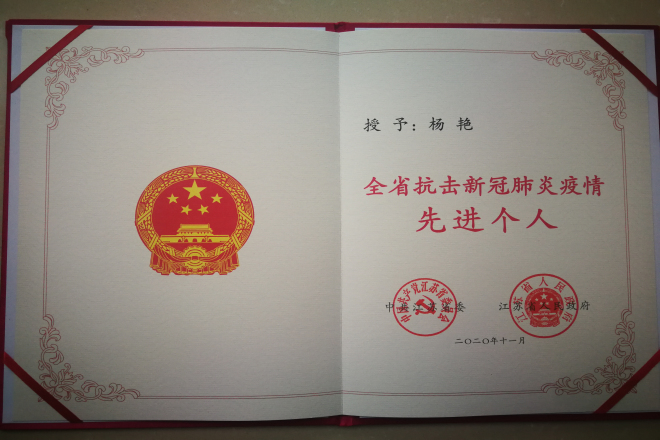 楊艷老師榮獲全省抗疫先進(jìn)個人榮譽(yù)稱號