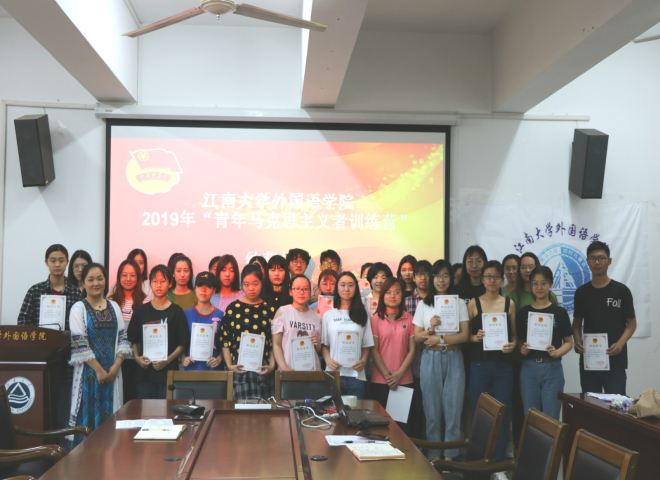 2019年6月6日上午9點(diǎn),外國語學(xué)院“青年馬克思主義者培養(yǎng)工程”訓(xùn)練營結(jié)營儀式在外院A349順利舉行。學(xué)院黨委副書記劉伯賢老師、分團(tuán)委書記楊艷老師出席,儀式由外國語學(xué)院白競怡同學(xué)主持,全體青馬學(xué)員參加本次結(jié)營儀式。