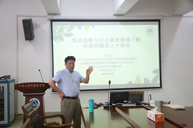 7月2日下午,南京農業大學外國語學院教授、典籍翻譯和海外漢學研究中心創始主任王銀泉教授來我院作了題為“國家戰略與社會需求視域下的外語和翻譯人才培養”的學術講座。講座由朱義華副院長主持,學院研究生與部分老師參加了此次學術講座。