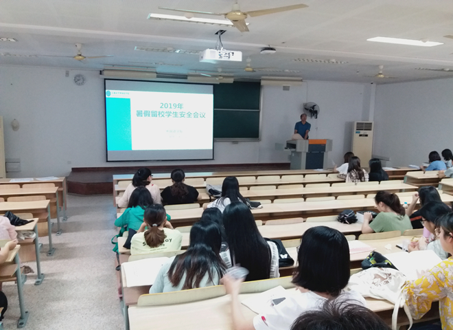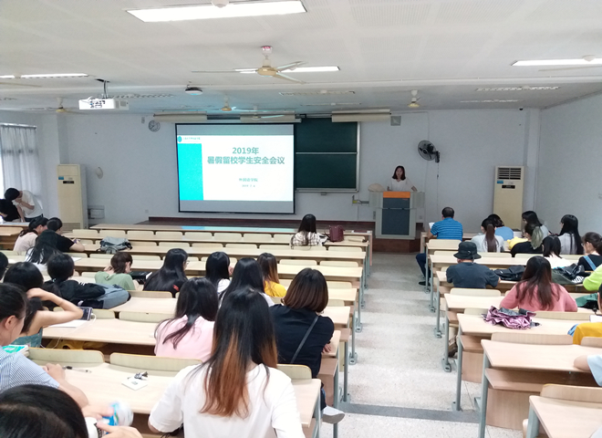 為了加強對暑假留校學生的安全管理,提高同學的安全意識,7月4日上午,外國語學院在2教召開全院暑假留校生安全會議。學院黨委副書記、副院長劉伯賢老師,分團委副書記張圓老師,輔導員苗文建老師以及學院留校學生參加會議,會議由張圓老師主持。