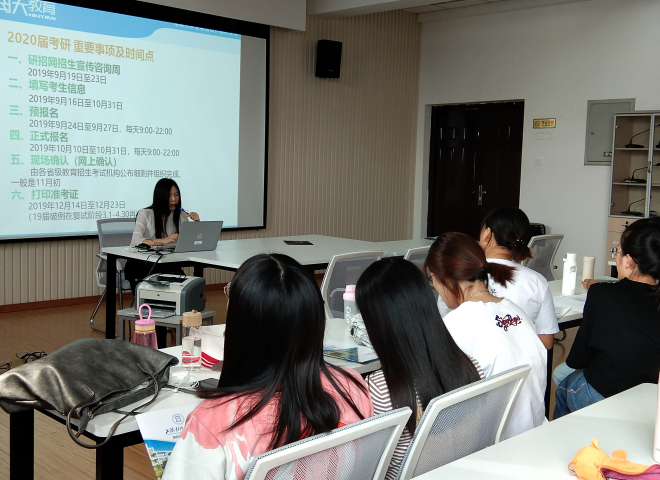 為營造良好的考研氛圍,提升考研成功率,為考研學子答疑解問,外國語學院于9月25下午兩點,在文科樓A529舉辦了針對2020屆考研學子的“考研精講會”,邀請海天考研無錫分校首席院校規劃師黃春梅老師就如何備考、擇校、調劑、跨考等方面跟同學們面對面交流。外國語學院16級、17級部分考研同學參加了本次精講會。