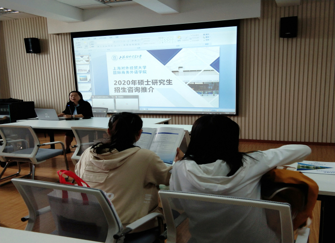 精講會伊始,黃老師就考研各個時間點、報考流程、報考方向及報考細節等重要要求逐一進行了說明;并指出同學們應密切關注目標院校招生簡章,認真了解報考方向的專業科目及報考要求。同時,她也對網報系統中可能出現的問題和報考點的選擇及注意事項引用了實例來詳細講解。接著,黃老師主要圍繞政治科目給出沖刺備考的三條建議:1.通學知識點,區分重要度;2.涉獵真題,學答題套路;3.整理筆記,提煉框架模板。此外,她表明,考研期間個人的精力管理和心態的建設是考試的重要保障,考研學子要注意自己的身心訓練,有規律地安排好作息時間。最后,黃老師還對初試成績公布后的各種可能:如何參加復試面試、選擇調劑學校等方面給出了詳細的建議。期間,上海對外經貿大學國際商務外語學院的金鏡玉教授就2020年研究生招生工作也開展了咨詢推介活動。