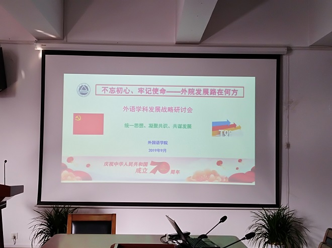 為結合外語學科實際開展“不忘初心、牢記使命”主題教育,全面落實js3333線路檢測中心第四次黨代會精神與js3333線路檢測中心2019年發展戰略研討會精神,增強黨性、提高能力,廣開言路、改進作風,科學規劃外國語學院發展定位,全面推進學院各項工作發展,9月25-27日外國語學院在文科樓A349舉行了“不忘初心、牢記使命”主題教育之“外院發展路在何方暨外語學科發展戰略研討會”。學院全體教授、副教授,系部正副主任、支部正副書記,博士及青年教師代表分三場參加了教育活動與研討會。