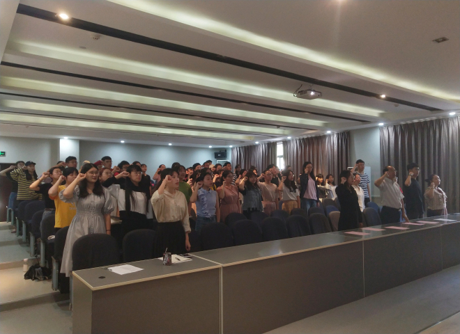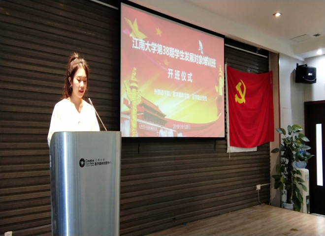 外國語學院英語1701的胡自威同學作為上一期優秀學員代表發言。在總結了自己在第37培訓班學習過程中的心路成長歷程和分享了自己參加培訓的感悟后,他表明中國共產黨既有理論的深度,也有實踐的厚度,并激勵參加此次儀式的同學們應端正入黨動機,認真學習理論知識,加強對黨的理解,為成為一名合格的黨員打下堅實的理論基礎,爭取早日加入黨組織。隨后,全體學員起立,面向黨旗鄭重宣誓。開班儀式在布置安排本期培訓班的任務和具體要求后圓滿結束。