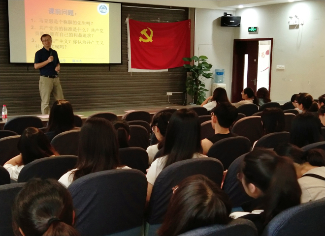 其后,外國語學院黨委副書記、副院長劉伯賢為大家帶來開班第一講:認識中國共產黨。劉書記主要從黨的性質、黨的宗旨、黨的指導思想、黨的奮斗目標和同心共筑“中國夢”這五個方面由淺入深逐一展開詳細的講述,并像大家推薦一些關于中國共產黨建國、建黨、建軍方面的書籍和影視作品,鼓勵同學們多媒介全方位了解黨的歷史進程。在短暫課間休息后,馬克思主義學院陳永杰教授為學員們展開第二講:如何理解《共產黨宣言》。他以三個問題為引線,從四個角度闡釋如何理解《共產黨宣言》,最終回歸問題的答案,深入淺出的分析讓同學們對共產黨員的標準和共產黨人的宗旨有了進一步的深刻感悟和理解。