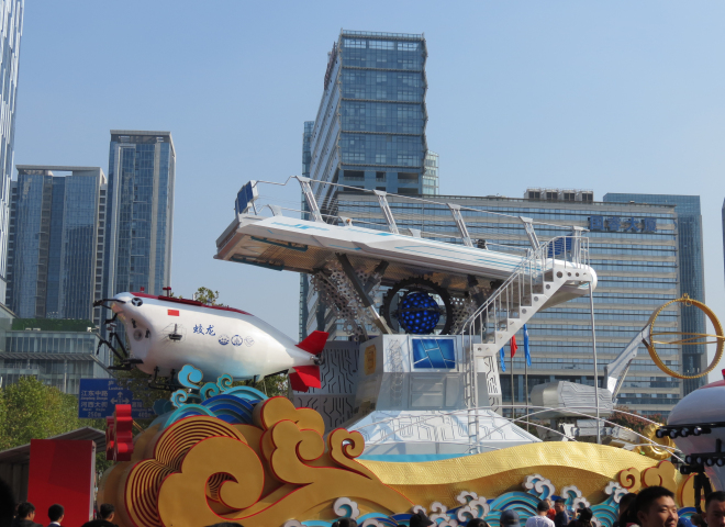 在展會入口,首先映入眼簾的就是開闊而壯觀的室外展區(qū),在國慶閱兵場上亮相的標(biāo)志著江蘇發(fā)展的花車—“江蘇智造”,赫然屹立在我們的眼前,繁復(fù)而細(xì)致的設(shè)計無一不體現(xiàn)著“智造”。讓在場參觀的全體黨員無一不為江蘇的強盛感到自豪,深深贊嘆于新中國成立70周年來江蘇省的發(fā)展成就。