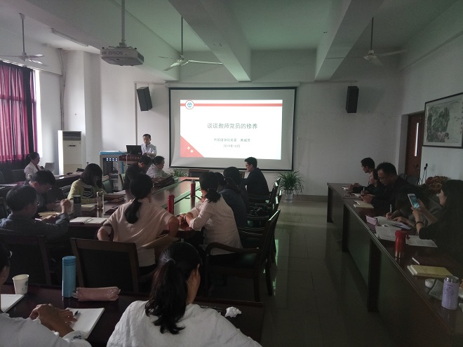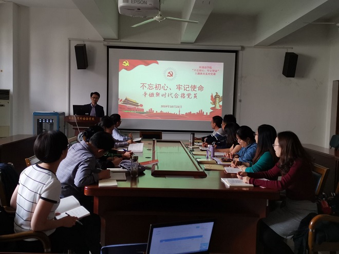 10月23日下午,英語系黨支部全體黨員在外國語學院會議室參加了“不忘初心、牢記使命”主題教育系列黨課學習活動。
