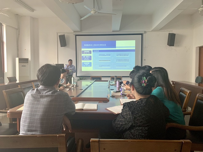 學院黨委書記黃城芳以“談談教師黨員的修養”為題,介紹了李保國、黃大年、鐘揚、交大西遷與哈工大“八百壯士”等五個高教戰線上的先進個人與集體事跡,讓大家深切感受其“教育報國守初心,立德樹人擔使命”的高尚品質。黃書記號召全體黨員教師學習高教戰線榜樣,爭做德能雙馨教師,弘揚愛國奮斗精神,做好本職工作,建功立業。