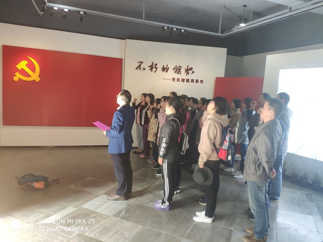 活動的第一站選在了紹興市區的一座明代建筑,由陳云將軍題寫的“周恩來祖居”五個大字熠熠生輝,大家佩戴黨員徽章,在祖居內的“周恩來史跡陳列室”仔細觀看,深切感受周恩來同志半個多世紀奮斗的人生,他的人生歷程是中國共產黨不忘初心、牢記使命歷史的一個生動縮影。正如習近平總書記所說:“周恩來是近代以來中華民族的一顆璀璨巨星,是中國共產黨人的一面不朽旗幟。”在陳列室內,學院黨委書記黃城芳帶領大家重溫了入黨誓詞,讓大家牢記自己的莊嚴承諾,時刻以黨員的標準嚴格要求自己。