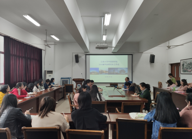 為精準做好2020屆畢業研究生就業工作,了解畢業研究生就業動向,鼓勵畢業研究生盡早做好就業準備,11月13日下午,外國語學院在A349會議室召開了2020屆畢業研究生工作會。學院黨委副書記、副院長劉伯賢,研究生副院長朱義華,分團委書記、研究生輔導員楊艷,研究生教務秘書王莉莉和全體畢業年級的研究生出席會議。