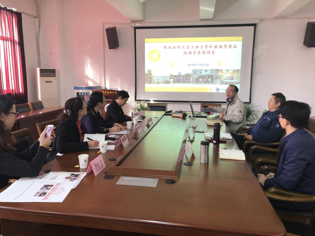 2019年11月21日上午, 大連工業大學外國語學院一行四人在劉愛君院長的帶領下來我院調研專業培養方案修訂、專業培養方案論證、專業外語教學等工作,我院方文開院長、朱義華副院長、英語系主任孫志祥教授出席了本次調研交流會。