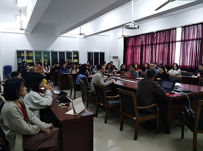 殷教授先從學術寫作談起,強調了選題中二手資料的重要性與研究寫作中一手資料的重要性。隨后,殷教授重點講解了文化批評的來龍去脈,從文化與批評兩個方面梳理了文化批評的定義:文化批評,即對“文明”弊端的批評活動。從文化說起,指出文化觀念的成熟,始于文明與文化的決裂。就批評而言,追溯并評論了英美批評家的相關觀點。最后,殷教授闡述了文化批評的走向,指出文化批評仍需以文學為中心。殷教授的講學深入淺出,通俗易懂,讓在座師生都深受啟迪。隨后,殷教授現場回答了師生的問題,并對在座研究生論文寫作中實例的列舉提出了指導。