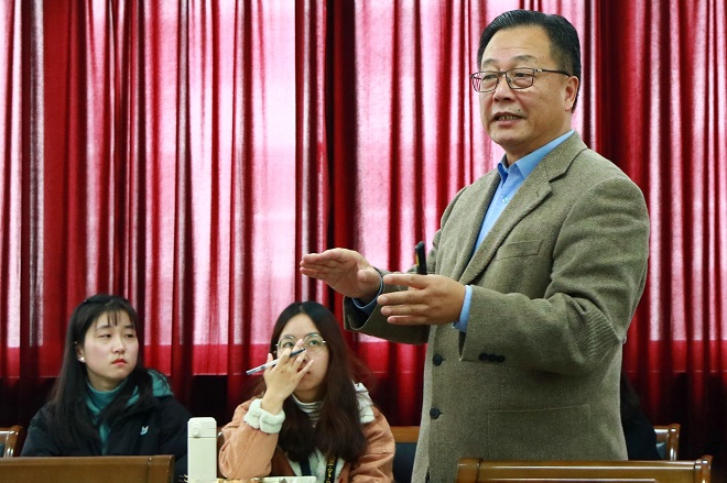 11月29日下午,外國語學(xué)院學(xué)科系列講座第十五講暨英語語言文學(xué)前沿專題講座于文科樓A349如期舉行。本次講座有幸邀請到美國加州州立大學(xué)奇科分校英語系張愛平教授,他演講的主題為“學(xué)術(shù)研究:是真愛之舉還是求生之道”的講座。外國語學(xué)院全體研一新生、部分教師與高年級研究生聆聽了講座。朱義華副院長主持了本次講座,他對張愛平教授受邀來我院講學(xué)表達(dá)了誠摯的感謝,并對張教授的學(xué)術(shù)成就作了簡要介紹。