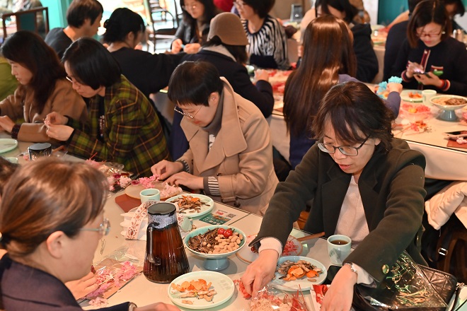 活動的第二個環節是手工制作團扇。團扇作為中國傳統藝術品,深受廣大女性的喜愛,在工作人員介紹了制作流程后,老師們開始自己動手,在一番精心的選材和設計后,一把把清新靈動的團扇“新鮮出爐”。