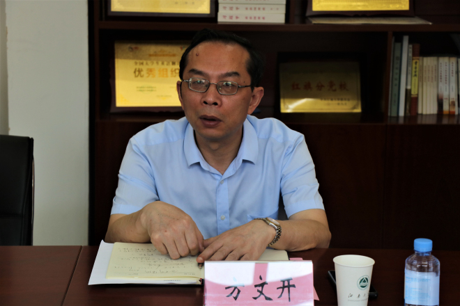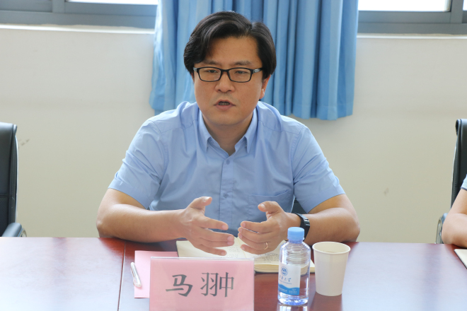 方文開對馬翀一行來訪表示熱烈歡迎,并簡要介紹了外國語學院的歷史沿革、學科建設、科學研究與人才培養等情況。李榮華主要就黨管人才以及學院黨建與思政工作整體情況作了簡要介紹。顧琦一、劉伯賢圍繞自身分管工作分別做交流發言。