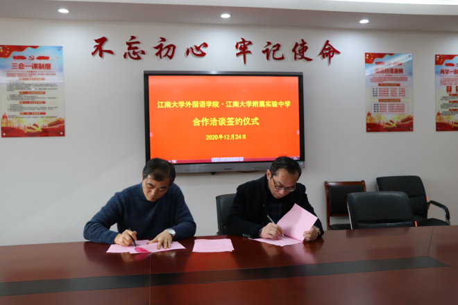 12月24日下午3:30,我院與js3333線路檢測中心附屬實驗中學共建學生實習基地簽約儀式在js3333線路檢測中心附屬實驗中學六樓會議室舉行。學院院長方文開、黨委副書記劉伯賢、副院長顧琦一、附屬實驗中學校長吳衛東、校黨總支書記王星、副校長陳柏林參加了簽約儀式。