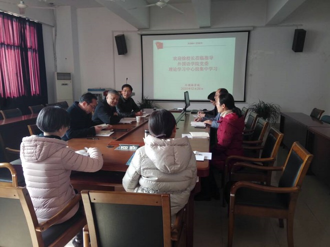 12月28日中午,外國語學院黨委理論學習中心組在文科樓A349開展集中學習,徐巖副校長到會指導。