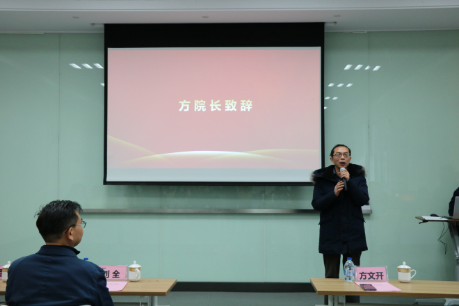 授牌儀式后,外國語學院院長方文開致辭。方院長首先對此共建實習基地的表示祝賀,對未來充滿期待。方院長介紹了學院的師資力量以及近幾年學院發展情況。方院長強調:此次實習基地給我院學生的成長提供了平臺,大家要利用實習的機會鍛煉成長,將專業所學落地實踐,成長成為社會所需、國家所需的人才。