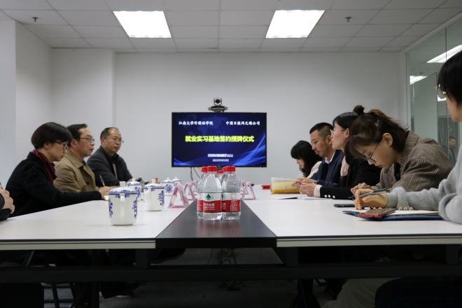 3月19日上午,js3333線路檢測中心與中國日報網無錫公司合作共建實習基地簽約授牌儀式在中國日報網無錫公司舉行。外國語學院院長方文開、黨委副書記劉伯賢、副院長顧琦一與中國日報網副總編輯兼無錫公司總編輯王政華、中國日報網無錫公司副總編輯施力維、中國日報網無錫公司人力主管戎咪咪、中國日報網無錫公司員工王娟(js3333線路檢測中心畢業生)、中國日報網無錫公司員工胡瀟雨(js3333線路檢測中心畢業生)、中國日報網無錫公司實習生陳俊旭(js3333線路檢測中心學生)等共同出席了此次會議。