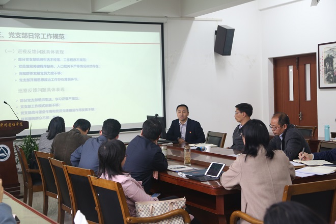 會(huì)上,史書記對(duì)校巡察組反饋的九個(gè)有關(guān)基層黨建的問題進(jìn)行了通報(bào)。他強(qiáng)調(diào),針對(duì)這些問題,各支部應(yīng)認(rèn)真對(duì)照,落實(shí)整改,確保支部工作標(biāo)準(zhǔn)化、規(guī)范化。史書記還對(duì)我院近期黨建工作任務(wù)進(jìn)行了梳理和部署,希望支部書記們帶領(lǐng)支委委員群策群力,學(xué)用結(jié)合,切實(shí)發(fā)揮黨支部的戰(zhàn)斗堡壘作用,為學(xué)院建設(shè)添磚加瓦!