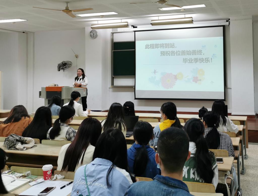 之后,張圓老師重點強調了大四學生的安全問題。指出大四學生流動外出頻繁,一定要注意人身安全,宿舍不允許獨居,及時合并宿舍,并通過一些具體的案件使學生提高警惕度。各種違規違紀的問題也要杜絕,并且要警惕電信詐騙,提高安全防范意識。最后,張圓老師表達了對同學們的不舍之情,預祝大家能擁有美好未來,畢業季快樂!