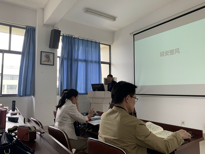張效國老師首先給全體教師上了一堂生動的黨史教育微黨課,內容圍繞延安整風展開,介紹了延安整風的背景、主要內容、方針方法、延安整風的經驗與意義,最后回歸到延安整風對加強黨的作風建設的現實意義。全體教師深刻認識到延安整風的歷史貢獻,領悟了加強黨史學習對師德師風建設的重要啟示。