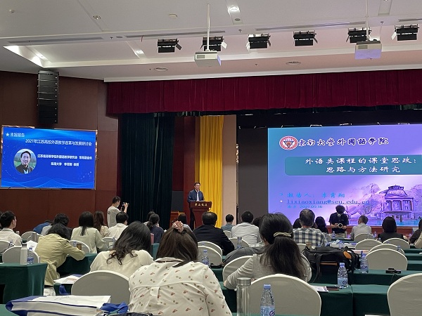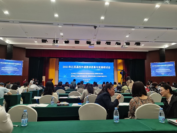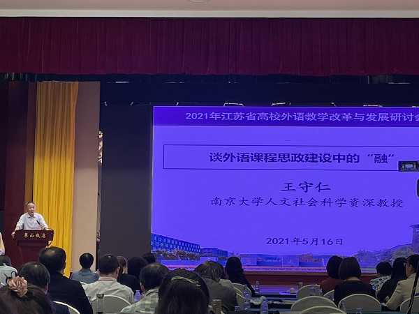 由江蘇省高等學校外國語教學研究會與高等教育出版社主辦的2021年江蘇省高校外語教學改革與發展研討會于5.15-16日在南京召開。本次研討會以“大學外語教學中的課程思政融入”為主線,分別針對本科院校與高職院校的大學外語教學中如何推進課程思政教學改革進行了深入研討。大會采用了專家發言、教師分享與互動交流的方式進行。我院朱義華、張效國與王偉煒老師參加了會議學習與研討。
