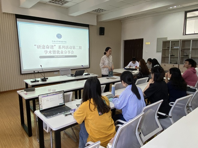 2021年5月14日下午2點(diǎn),外國(guó)語(yǔ)學(xué)院“研途奮進(jìn)”第二期活動(dòng)在文科樓A529成功舉辦,本次活動(dòng)主題為學(xué)術(shù)及就業(yè)經(jīng)驗(yàn)分享,我院劉伯賢副書(shū)記、謝競(jìng)賢副院長(zhǎng)觀摩了本次活動(dòng)。2020級(jí)全體碩士研究生及部分2019級(jí)碩士研究生參與了本次活動(dòng)。