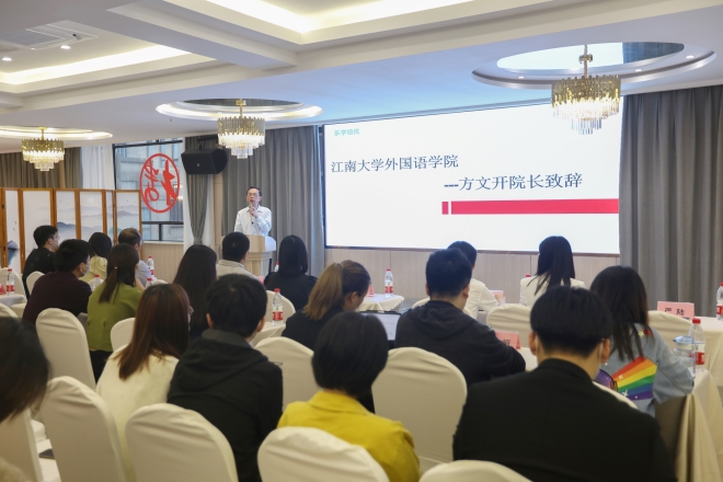 隨后,外國語學院院長方文開致辭。方院長就此次校企合作向宋校長以及各位校友表示了感謝與支持,肯定了合作在促進學生和企業共同發展、促進基礎教育教學、講好“中國故事”等方面的重要意義。最后,方院長表達了雙方進一步加強合作的期許,并歡迎各位江大畢業的學子常回母校。