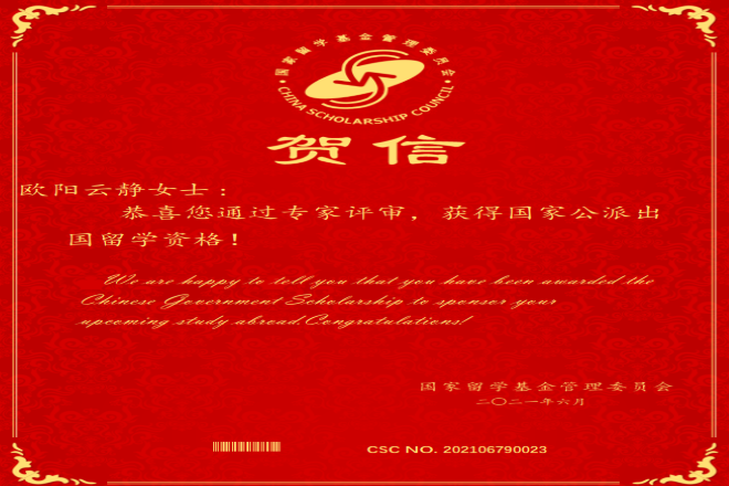 近日,各高校陸續(xù)公布了2021年博士研究生招生錄取結(jié)果。我院學子不負眾望,捷報頻傳。其中,2021屆碩士畢業(yè)生歐陽云靜同學成功申請到英國格拉斯哥大學的翻譯學博士研究生,并經(jīng)國家留學基金委專家評審,錄取為2021年國家建設高水平大學公派研究生項目(與英國格拉斯哥大學合作獎學金)出國留學人員,同時,2021屆碩士畢業(yè)生李貴潔同學被西南大學外語學院英語語言文學錄取為博士研究生。