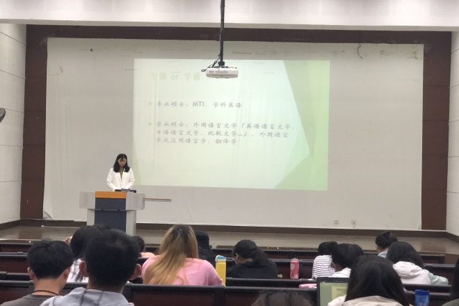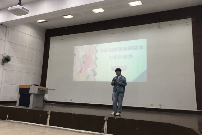 為了進一步提高我院2018級學生的考研和就業熱情,明確目標,掌握相關技巧, 5月20日晚,外國語學院考研就業主題分享會在一教1C109舉行,周鴻鈺、姜小潔、李愛璇、張悅和景暢學姐分享了她們的考研、就業經驗。