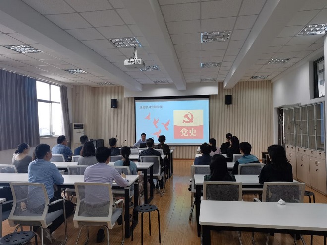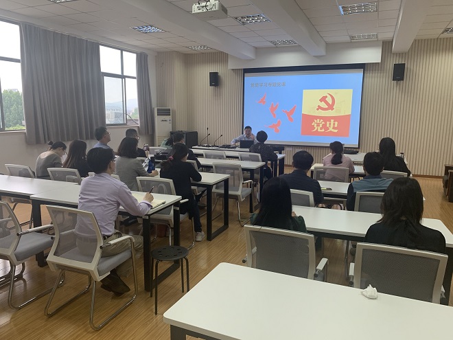 5月19日下午,外國語學院英語系黨支部書記彭方針副教授為英語系全體黨員上了一堂嚴肅的以黨的歷次代表大會為主題詞的黨史微課。