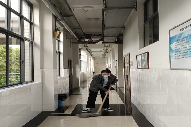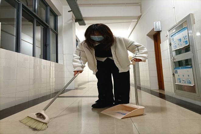 謝亞婷同學也有類似的感受:“這次清掃活動對我來說是一種成長。疫情期間,輔導員們與老師們在校內與校外守護我們,幫助我們解決生活上、學習上、心理上的問題,為我們保駕護航。而作為外國語學院的學子,我們也應該盡自己所能,為學院出一份力,用自己的方式助力科學防疫,發揚志愿精神,只有燃燒的青春才能散發光熱!”