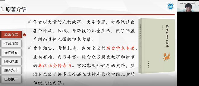 開題過程中,兩位項(xiàng)目主持人先后詳細(xì)介紹了翻譯項(xiàng)目的原著與作者、原著的海外推廣意義、翻譯團(tuán)隊人員構(gòu)成、翻譯項(xiàng)目的進(jìn)程安排與質(zhì)量管理、以及海外出版推廣計劃等。