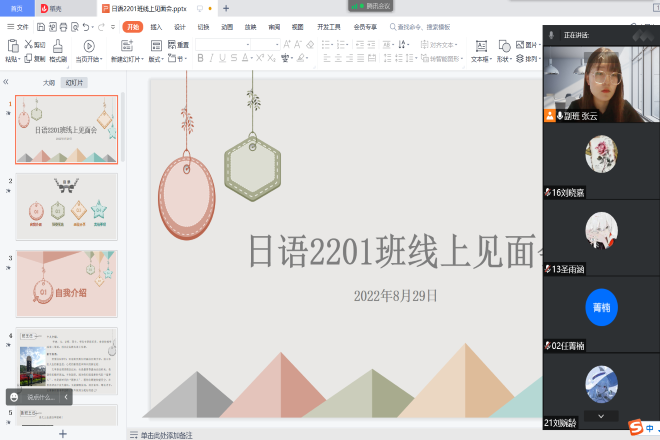 26號至31號,在新生報到前各班組織開展新生線上見面會。在線上見面會中,大家通過自我介紹拉近彼距離,副班主任分享了自己的學習生活感悟,班主任老師介紹了新生報到的相關事宜和要求,對前兩周的網課學習注意事項進行介紹,提醒大家及時參加網課學習,同時對暫緩返校的同學進行安慰和鼓勵。期間,外國語學院黨委副書記劉伯賢攜年級輔導員、新生班主任老師通過視頻連線的方式對家庭經濟困難新生開展“云”家訪慰問活動,為新生送去學院的溫暖和關心,帶去信心和力量。