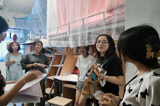 學(xué)院領(lǐng)導(dǎo)老師在走訪宿舍過程中與新生交談,詳細(xì)地詢問了新生的家庭情況和入學(xué)感受,以及對(duì)新學(xué)校新環(huán)境的適應(yīng)情況,同學(xué)們紛紛表示宿舍條件很好,同學(xué)相處很愉快,對(duì)即將開始的大學(xué)生活充滿期待。新生們還就自己關(guān)心的問題與老師們進(jìn)行了交流,學(xué)院黨委副書記劉伯賢表示希望同學(xué)們盡快適應(yīng)大學(xué)生活,制定目標(biāo),做好規(guī)劃,合理的安排個(gè)人時(shí)間,按照學(xué)校疫情防控要求,做好個(gè)人健康日?qǐng)?bào),及時(shí)參加校園核酸檢測,并叮囑新生有困難可以向班主任和輔導(dǎo)員反應(yīng),共同解決。臨近中秋佳節(jié),學(xué)院準(zhǔn)備了中秋節(jié)月餅,由班主任老師在走訪宿舍過程中送給22級(jí)新生,讓大家感受到學(xué)院的溫暖。