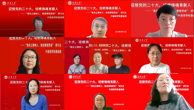 第38個教師節來臨,為了營造尊師重教、弘揚師德的良好氛圍,大學英語基礎部全體教師于9月14日在線開展“迎接黨的二十大,培根鑄魂育新人—落實立德樹人,推進課程思政”主題研討活動。會議由支部書記張效國主持,朱義華副院長到會指導。
