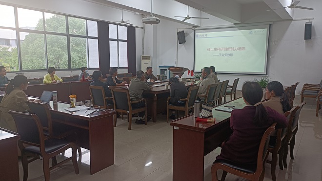接下來,培訓進入第二環節。謝競賢副院長根據學校的通知和文件,帶領大家一起學習《js3333線路檢測中心博士碩士學位論文抽檢及結果處理辦法》和《js3333線路檢測中心研究生導師管理辦法》,同時傳達了研究生院例會精神、要求以及研究生教育工作的發展趨勢。老師們認真聆聽培訓內容,領會文件精神。文件學習后,由學院王金安教授做了一場題為《碩士生科研創新能力培養》報告,王教授在碩士培養方面經驗豐富、培養了一批高端人才。王教授主要介紹了他培養碩士研究生的教育理念和具體做法。王教授表示,作為導師,首先要做好碩士研究生的第一責任人,要做學生的良師益友,關注學生的生活,愛護學生,關心學生,并分享了如何引導學生讀好書、如何引導研究生擺正心態、如何激發學生科研積極性、如何培養研究生的研究方法、如何提高研究生的寫作水平等的具體做法。王教授強調慢工出細活,既要苦干、也要巧干。最后,王金安教授分享了指導學生考博的經驗體會,得到了與會導師們的高度認可。隨后,導師們就文件和講座內容進行了學習心得的交流:要進一步踐行文件精神,認真做好導師工作;王金安教授能夠培養出多位應屆生考上博士是默默付出、靜心讀書、共同成長的水到渠成的結果,很多經驗和做法值得學習與實踐。