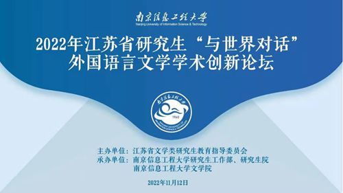 11月12日,2022年江蘇省研究生“與世界對話”外國語言文學學術創新論壇在南京信息工程大學舉辦。本次論壇由江蘇省文學類研究生教育指導委員會主辦,由南京信息工程大學研究生工作部、研究生院、南京信息工程大學文學院承辦。論壇采用線上線下相結合的方式進行。