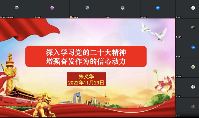 11月23日晚,拓展部黨支部組織黨員教師召開以“深入學習領會黨的二十大精神”為主題的線上支部政治學習。會議由支部書記邢嘉鋒老師主持,朱義華副院長蒞臨線上會議室并講授了專題黨課——“深入學習黨的二十大精神,增強奮發作為的信心動力”。