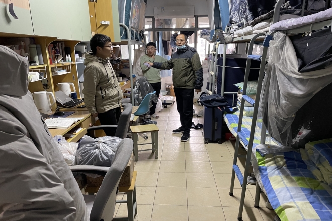 新學期,為了給返校的學生帶去學院的關心,并及時了解學生的思想動態、學習生活情況,2月13日下午,外國語學院黨委書記史志洪、黨委副書記劉伯賢、副院長顧琦一、副院長謝競賢、分團委書記陸芳以及輔導員老師一行來到浩苑、潤苑、李園、梅園,走訪關心我院返校學生。