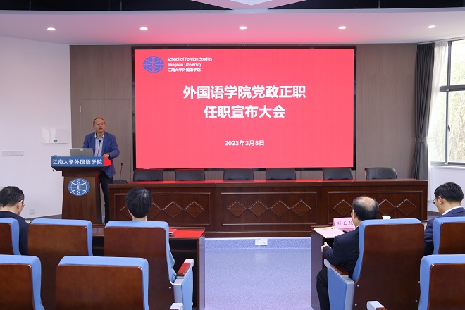 3月8日下午,外國語學院黨政正職任職宣布大會在君金報告廳舉行。學院黨政領導班子及教職工參加會議。校黨委常委、副校長顧正彪出席會議并發表講話。會議由外國語學院黨委副書記劉伯賢主持。