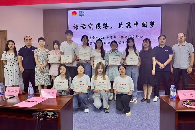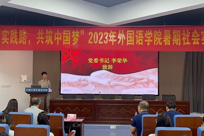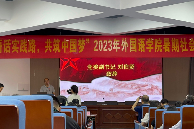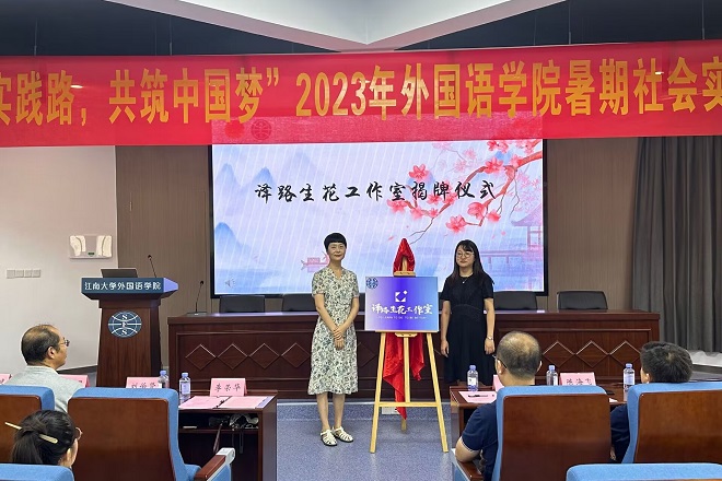 為深入學習貫徹黨的二十大精神,深化落實“時代新人鑄魂工程”,教育引導學生在社會實踐中厚植家國情懷、了解國情民情、增長知識才干。9月27日下午,外國語學院2023年暑期社會實踐答辯會暨譯路生花工作室揭牌儀式在君金報告廳舉行。外國語學院黨委書記李榮華、黨委副書記劉伯賢、分團委書記顧海星、輔導員苗文建和朱家燁出席了會議。無錫新航道國際教育校長王彬、無錫新航道國際教育大學生主管陳海飛作為特邀嘉賓出席本次活動。
