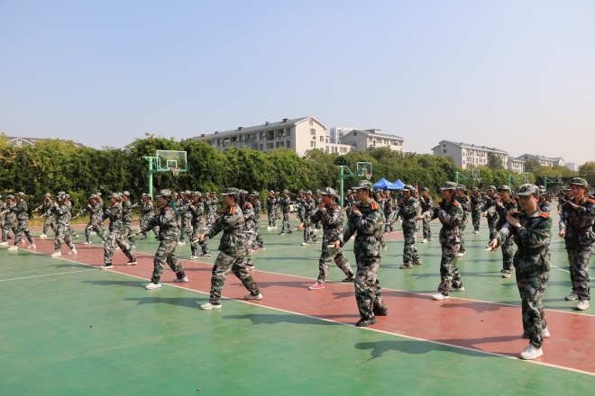 參訓學生組成分列式方陣和女子匕首操方陣,在教官統一指揮下作匯報展示。外院學子邁著堅定的步伐,動作整齊劃一,展現了軍訓的階段成果,彰顯了外院學子昂揚向上的青春風貌。匯報展示受到現場領導老師的一致好評。