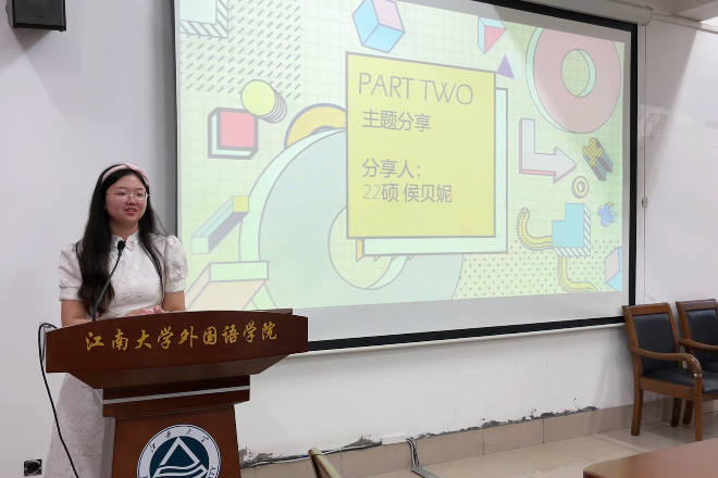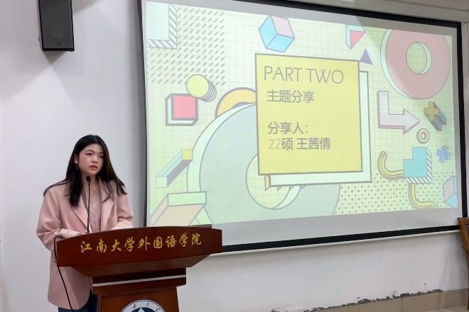 座談會正式開始,三位22碩的學姐從自身經歷出發,為23碩新生分享心理調節相關經驗。王茜倩同學以“自由、平衡、未來”為關鍵詞,從本校推免生角度,向新生提出以下三個建議:1.創造學習效率最高的環境;2.對自己進行鼓勵教育;3.拋棄好學生心態。并希望大家“不要內耗”。作為一志愿上岸的同學,以“心態轉變”為關鍵詞,在外參加論壇的楊李敏同學請花靖涵轉告各位學弟學妹:凡事做好自己就好,能做多大事,能走多遠路,不要過分糾結,并希望同學們“勞逸結合”。最后,侯貝妮同學以“體驗、反思、轉變”為關鍵詞,講述自己考研上岸的心路歷程,并建議各位同學欣賞自身、欣賞他人,找準目標,長遠看待,并希望大家在讀研期間都可以“滿載而歸”。