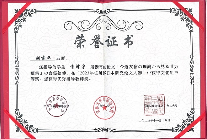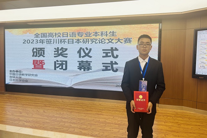 2023年11月18日,“2023年笹川杯日本研究論文大賽”在吉林大學圓滿落幕。我校20級日語專業學生傅澤宇沖進決賽,最終榮獲文化