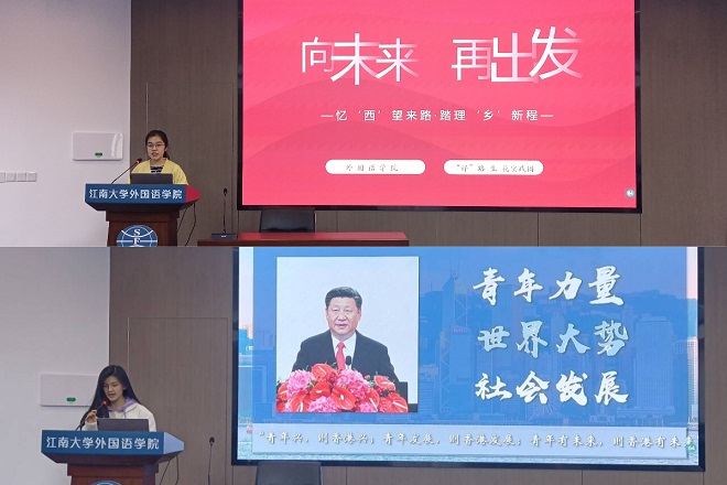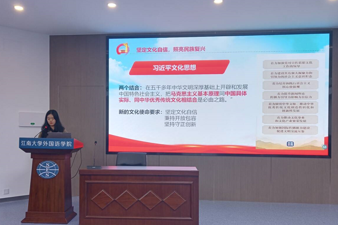 “一個國家、一個民族的強盛,總是以文化興盛為支撐,中華民族偉大復興需要以中華文化發展繁榮為條件。”校領導與青年學生一起上團課、學思想、話擔當,有效增強了英語2101團支部每一位同學的新時代青年政治素養,明確了自身在推進中外文明交流互鑒上的使命擔當,激勵外院學予以奮斗之“我”創優爭先,以實干之“我”強黨興國,為傳播中國聲音再“增一力”!