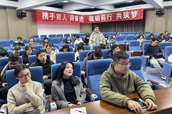 同學們就時代熱點問題、團學工作實際中遇到的困惑和不解展開了熱烈交流。周赟博士悉心解答,并向同學們闡釋了新時代“新”的內涵和新青年“斗爭”的含義。周赟博士的講解深入淺出,同學們受益匪淺。
