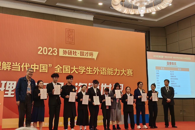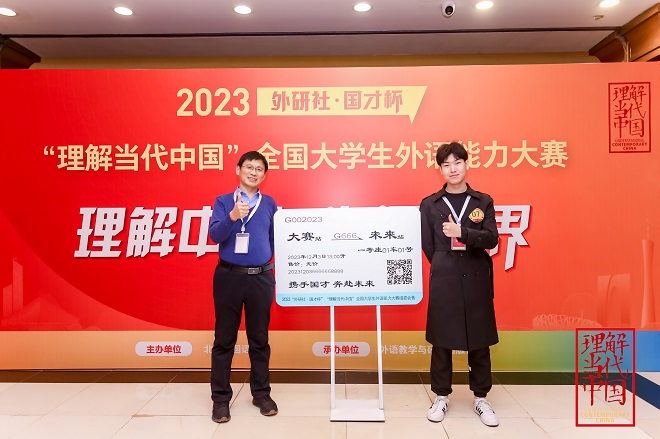 12月6日至8日,2023“外研社·國才杯”“理解當(dāng)代中國”全國大學(xué)生外語能力大賽國賽在北京落幕。在管紀(jì)龍與崔明姬兩位老師的指導(dǎo)下,我校外國語學(xué)院日語系杜學(xué)仕同學(xué),憑借精彩的演講、機(jī)敏的即興日語翻譯和在問答環(huán)節(jié)中的出色表現(xiàn),最終斬獲國賽銀獎(jiǎng),實(shí)現(xiàn)了我校學(xué)子參加該項(xiàng)賽事的開門紅。